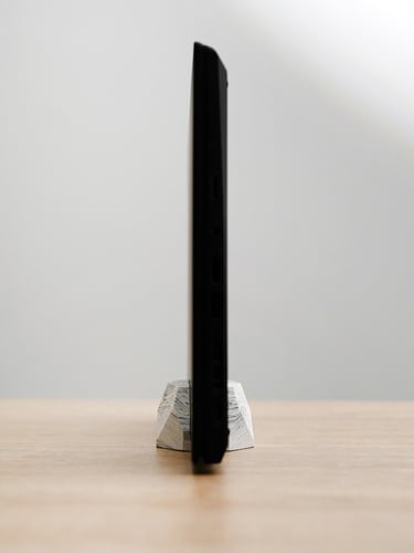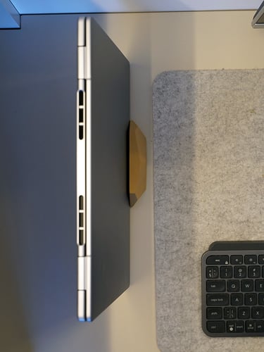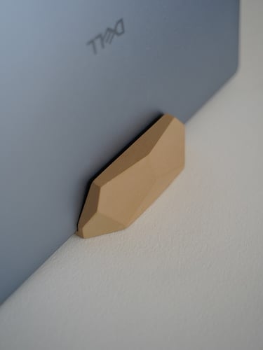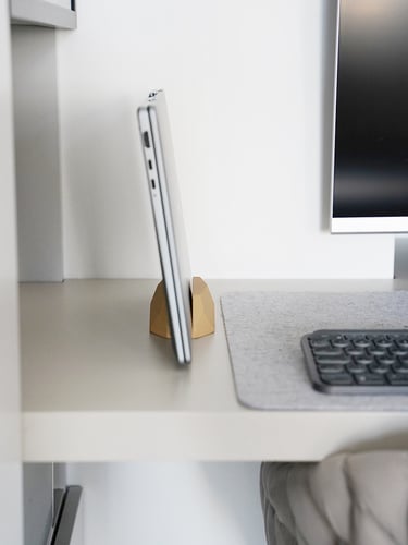 Minimalistinis nešiojamojo kompiuterio laikiklis, skirtas vertikaliam laikymui ir darbo stalo organizavimui. Šis vietą taupantis laikiklis leidžia laikyti kompiuterį stačiai, kai jis nenaudojamas, padeda sumažinti netvarką ant stalo ir maksimaliai išnaudoti darbo erdvę. Laikiklis yra puikiai tinkantis „MacBook“ ir kitiems nešiojamiesiems kompiuteriams.